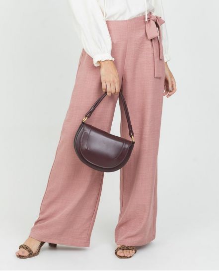 Pantalón cruzado para mujer con tiras para anudar en la cintura. Su silueta wide leg y tela 100% poliéster brindan un look fluido, elegante y versátil. Ideal para crear conjuntos modernos con un toque sofisticado.