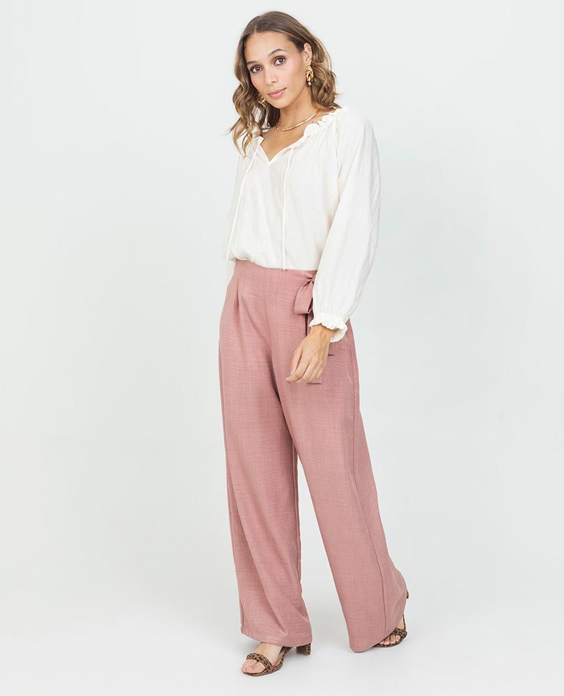 PANTALON CRUZADO PARA MUJER CON TIRAS PARA ANUDAR SILUETA WIDE LEG - POLIESTER 100%