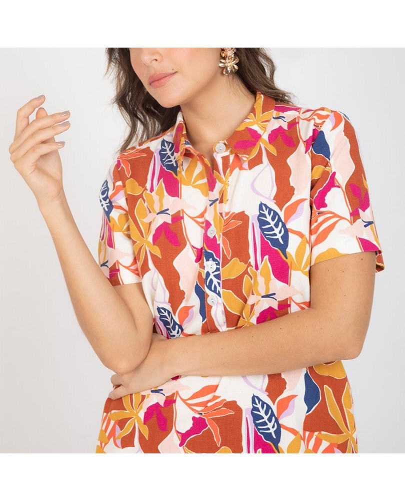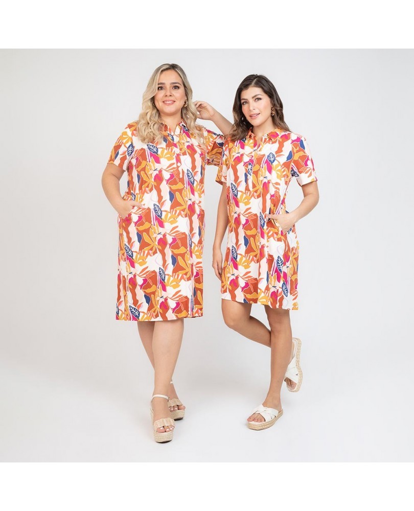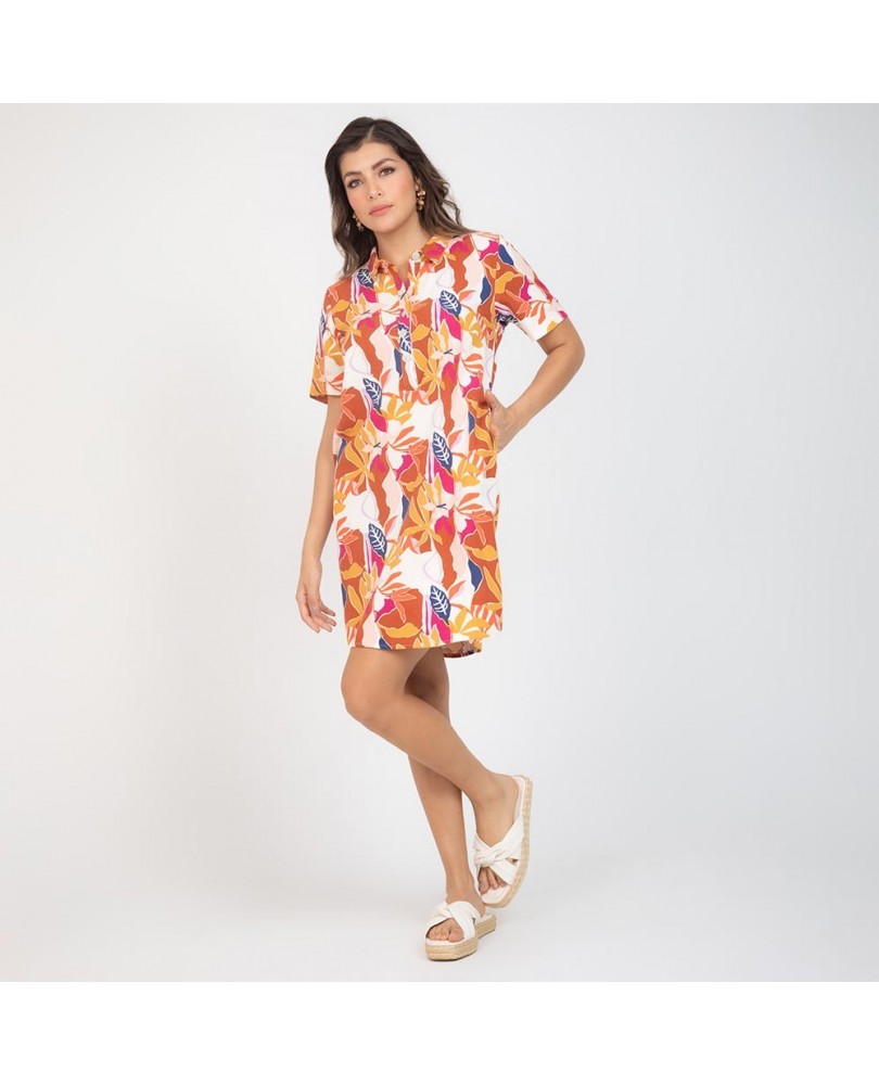 VESTIDO TALEGO PARA MUJER ESTAMPADO CON MANGA CORTA - VISCOSA 70% LINO 30%
