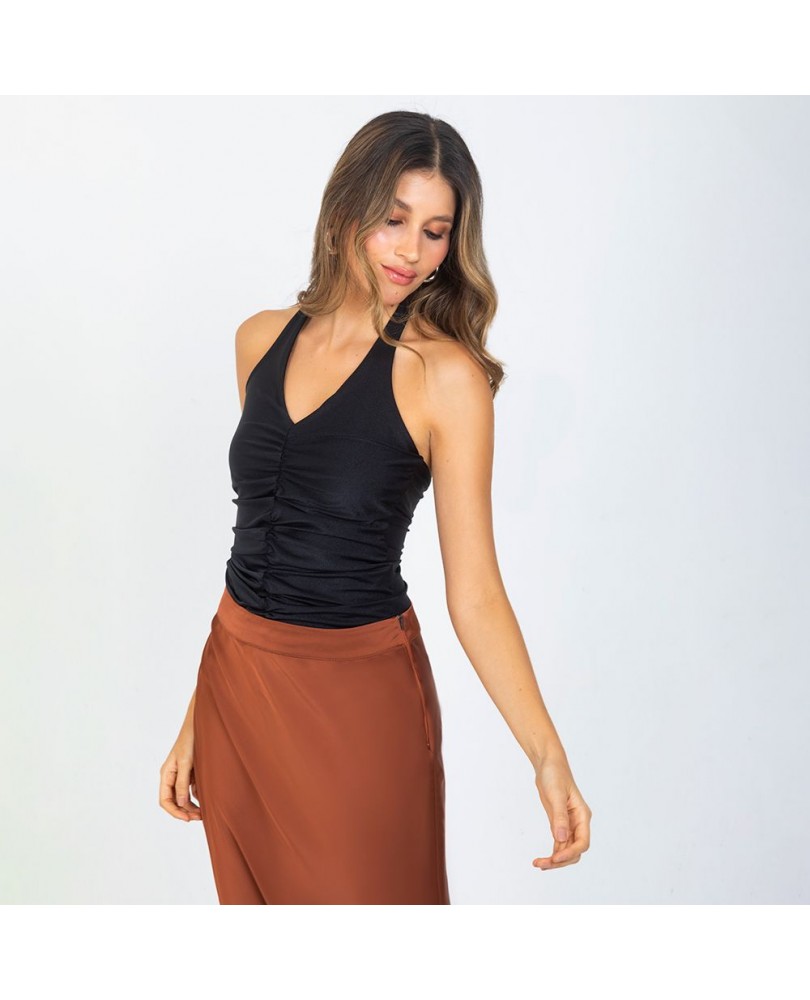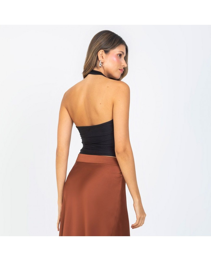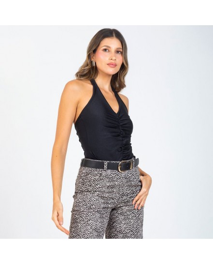 BLUSA CON RECOGIDO PARA MUJER ESCOTE V ESPALDA DESCUBIERTA - NAILON 76% ELASTANO 24%